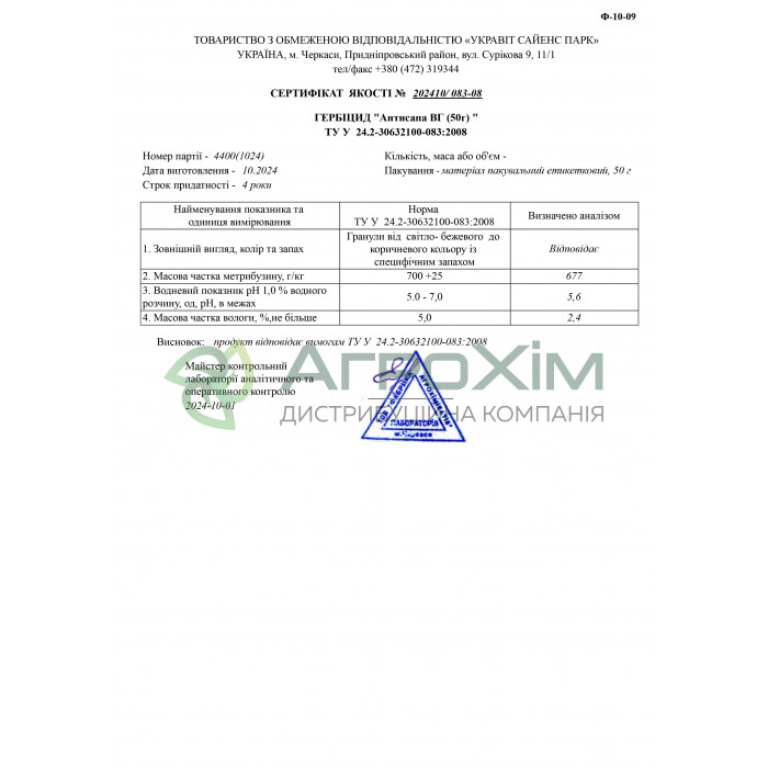 Метрибузин700 г/кг