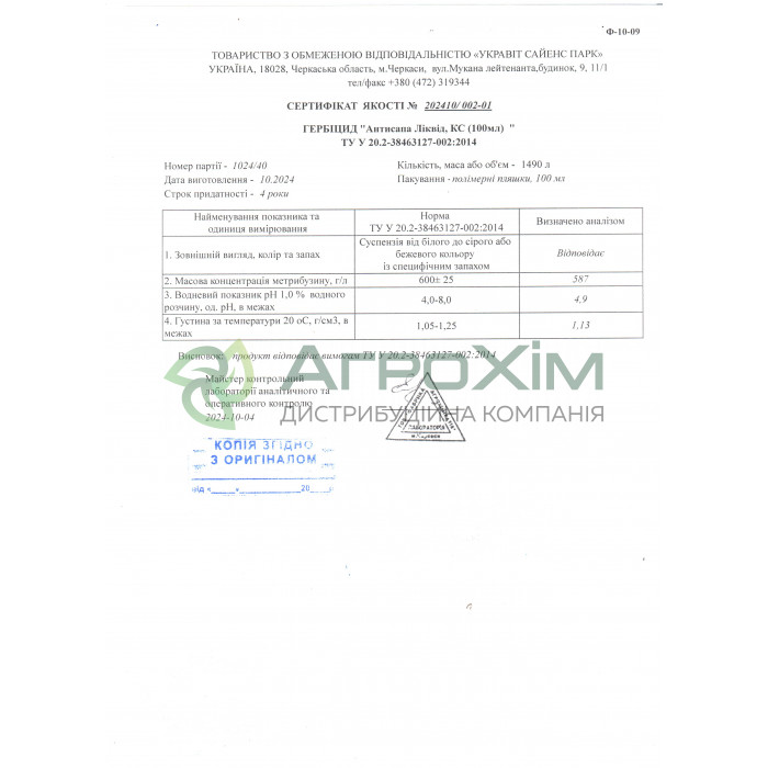 Метрибузин600 г/л