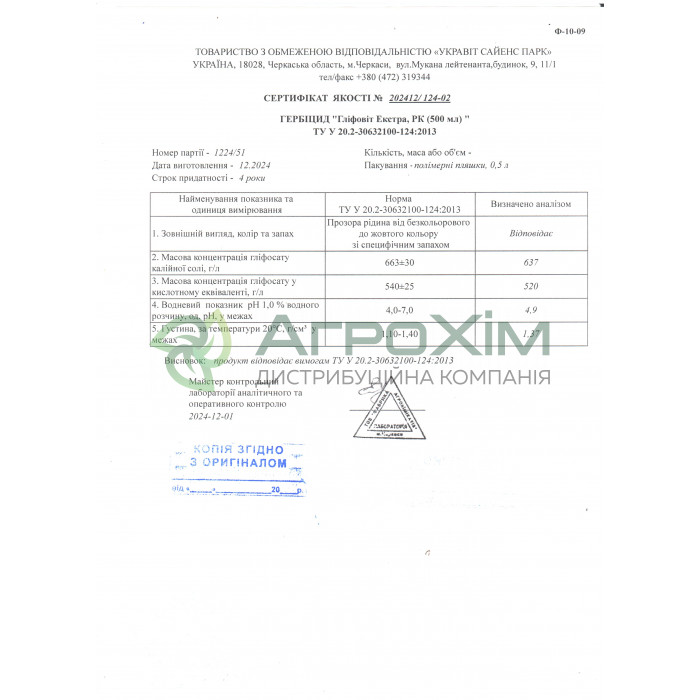 Глифосат калийной соли663 г/л